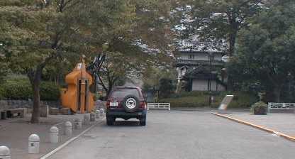 電話BOXだ。洒落たつくりになっている。この道をまっすぐ行くと下の写真のところ(大手門)に出る。
