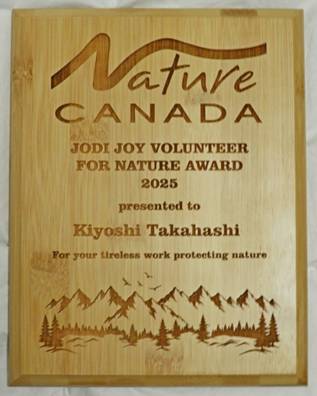 高橋さん(29C)が、この10月、カナダ最大の自然保護団体NatureCanada により表彰されました。「自然保護ボランティア賞」です。これは数十年にわたるカナダにおける高橋さんの献身的な活動の成果です。以下、受賞内容と高橋さんの近況をお伝えします。