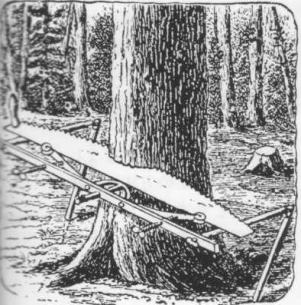 鋸刃はバネによって幹に押しつけられています。