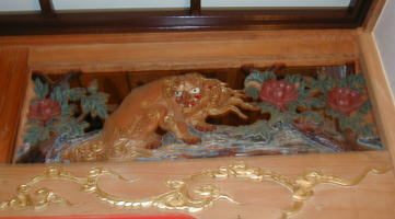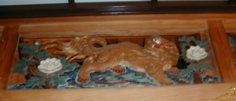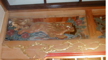 欄間を飾る獅子の透かし彫りも、福原郡八師の作です。 |