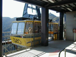 西日本最長の特大スケール!川越え、山越えの大パノラミツクロープウエイ。 山麓から1号支柱までは那賀川ワジキラインを、1号支柱から2号支柱までは剣山山系を、2号支柱から山頂駅までは紀伊水道・橘湾と移り変わります。(パンフより) 全長2775m。高低さ422m。運賃は往復2,400円。20分間隔で運転しています。 |