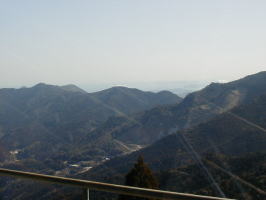 ロープウエイを使わない場合は、この山の中腹まで車で登り、そこから1キロほど急な山道を登つたそうです。この道は大変危険な山道で、遍路にとつて難所のため眼下に見える宿に泊まり太龍寺に参拝しました。(ガイド談) |