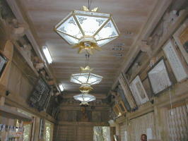 太子堂 高野山奥の院を模倣し拝殿、奥殿式で配立されております。奥殿には宗祖弘法大師像が安置され、拝殿には大師の十代弟子が壁に描かれております。また拝殿の彫刻は四国八十八カ所中最も繊細な描写で中国の神話、民話が刻まれております。開帳は旧3月21日です。(パンフより) |