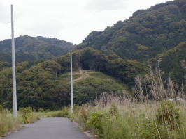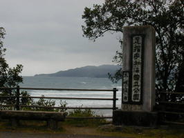 「大文字山」 中村市内、四万十川に架かる渡川大橋を渡りきると足摺サニーロード(R321・意味はおわかりですね)に入り、四万十川沿いを南下して足摺岬を目指します。 中村市は、一条教房が応仁の乱をのがれてここに中村御所を造り京文化を伝えたので、四国の小京都と呼ばれています。 足摺岬へ向うR321(足摺サニーロード)の車中からは大文字山が見えます。天気が崩れ小雨がぱらつくようになりました。 |