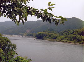 四万十川は、高岡郡不入山を源とし、山間を蛇行しながら南へ向って流れていきますが、ここ窪川町で北に流れを大きく変えて流れていき、西土佐村でまた南に向って大きく流れを変えて中村市で土佐湾に流れる込む清流です。この岩本寺から中村市を通り抜け次の足摺岬の第38番金剛福寺までの距離は97キロもあり、札所の間の距離としては最長です。(字のとおり、足を摺り減らすほど大変です。) |