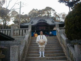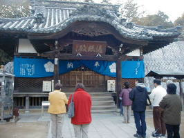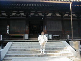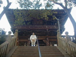 |  | 境内の正面に大きな本堂、左手の石段を上がると大師堂があります。本堂は国宝、ご本尊(十一面観世音菩薩)は国の重文という由緒あるお寺です。時間に追われ、ここでの読経が一番粗相なものでした。境内に居合わせた家族づれの巡礼の方に写真を取ってもらい、参道を戻る途中でドライバーさんに会いました。17時少し前でした。 |