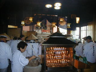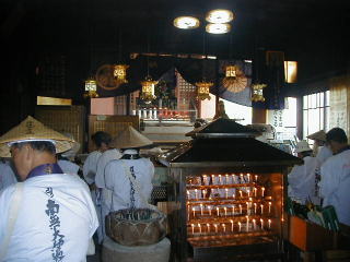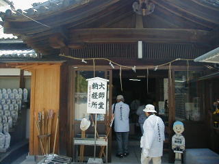 「大師堂内陣」 手前は、お土産さん。その奥にある大師さま。 |