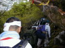 15:46裏行場修行 (親の胎内くぐり) 16:06裏行場修行 (蟻の戸渡り) 16:14裏行場修行 (平等石へ向う) |