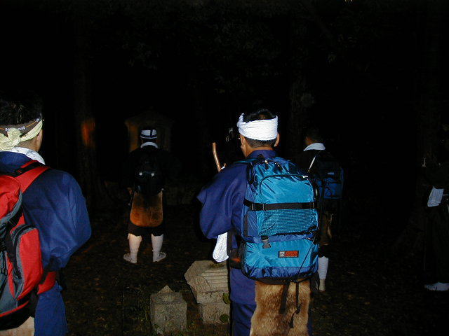 3:00 七越の峯 4:00 吹越の宮(靡4番) 4:12 「吹越宿は大峰七十五靡中第四番目の霊地にして修験道修行の道場なり往香行者大峰八大金剛童子中の除魔童子を勧請守護神と定め給ふ以来熊野より順峰修行最初の大護摩修行の霊地として現在に及ぶ今尚浄願信者詣する者跡をたゝす」 とあります。 |