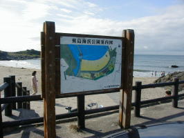 三陸特有のリアス式海岸で、巨岩がそびえる複雑な海岸線と、白い砂浜のコントラストが目に楽しい。所々に広がる天然芝の緑も美しい。 | |||