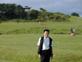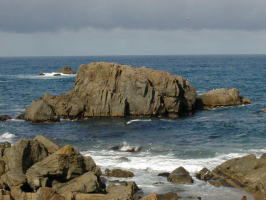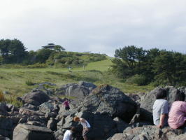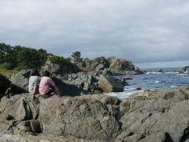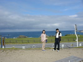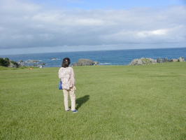 広々とした芝の草原、でもここは海岸なのです。天然芝です。芝原からいきなり岩肌になり、波が打ち寄せる。種差海岸は三陸海岸の北のはずれ皆上町にあります。 | |||