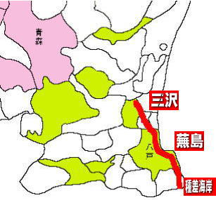 7月27日(金) 21:50東京駅八重洲南口から、「八戸」行き高速バス「シリウス」に乗り9時間、650Kmの旅が始まる。(バスは6号車まであり、私たちは3号車でした。)席は3列スーパーシートで、スリッパ、毛布の用意がありとても快適です。2時間毎にサービスエリアでに休憩するのがわかりました。八戸IC・馬場・八日町に停車し小中野バスセンターには、6:50分に到着しました。 7月28日(土) バスを降り徒歩5分ほどの銭湯で身も心もリフレッシュし、NHK朝ドラ「ちゅらさん」を見ながら昨日のパンで朝食をすませました。とても親切なおかみさんで、初対面の私たち家族に、八戸市や青森の事を色々教えてくれました。最後にタクシーを呼んでもらい、市内の日産レンタカーの営業所に向かいました。 「三沢空港レンタカー」は三沢空港内にありますが、「本八戸駅」近くにある営業所で車を借り三沢空港で車を返します。 種差海岸 天然の芝生が広がる美しい海岸は、日光浴に最適で大勢の人がいました。春から夏にかけて、ハマナス、ニッコウキスゲなどが咲き乱れます。遊歩道が整備され、海水浴やフィッシングも楽しめ、キャンプ場もあります。 蕪島(かぶしま) 蕪島のウミネコ 天然記念物ウミネコ繁殖地 八戸市鮫町字鮫「蕪島海浜公園」 蕪島の名前の由来は、島全体を黄色い蕪の花が覆っていたためと言われています。現在は、蕪の花の代わりにノラナタネが咲き誇っています。ノラナタネの黄色とウミネコの白が見事なコントラストで、見るものの目をひきつけます。(ガイドブックより) |