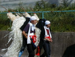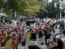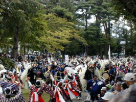 しし踊りは、南部ばやしとは対照的に激しい曲調に乗り勇壮な舞い。躍動感あふれる神楽、明るい民謡調の山口さんさ、軽快な田植え踊りも次々に繰り出した。5月の遠野さくらまつりで予定されていた女殿様・清心尼公の行列も加わり、沿道に詰め掛けた大勢の観衆は、郷土芸能の一大祭典に見入っていた。