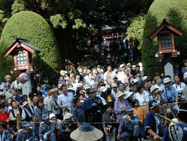 初日は目抜き通りを歩行者天国にしてのパレード。威勢のいいみこしが先頭を切って祭りムードを盛り上げ、華やかな「南部ばやし」が登場。金冠を頭に乗せ、赤い襦袢(じゅばん)姿の女子小中学生が笛、太鼓などのおはやしに合わせ、京都の「祇園ばやし」を取り入れたと言われる優美な町方踊りを披露した。