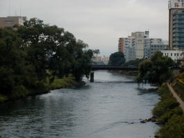 JR盛岡駅は、東北新幹線の終着駅です。今年12月には、青森県八戸までの区間が開通します。(仙台=盛岡は1駅で、約45分でした。) 日本で一番広い県、岩手県の盛岡市。南部藩20万石の城下町です。盛岡駅前広場には石川啄木の歌碑がありました。駅前から5分ほど歩くと北上川の清流が流れています。北上川に架かる「開運橋」をわたると官公庁・繁華街につづきます。 |