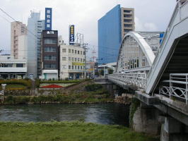 北上川にかかる「開運橋」。官庁・繁華街はこの先です。 |