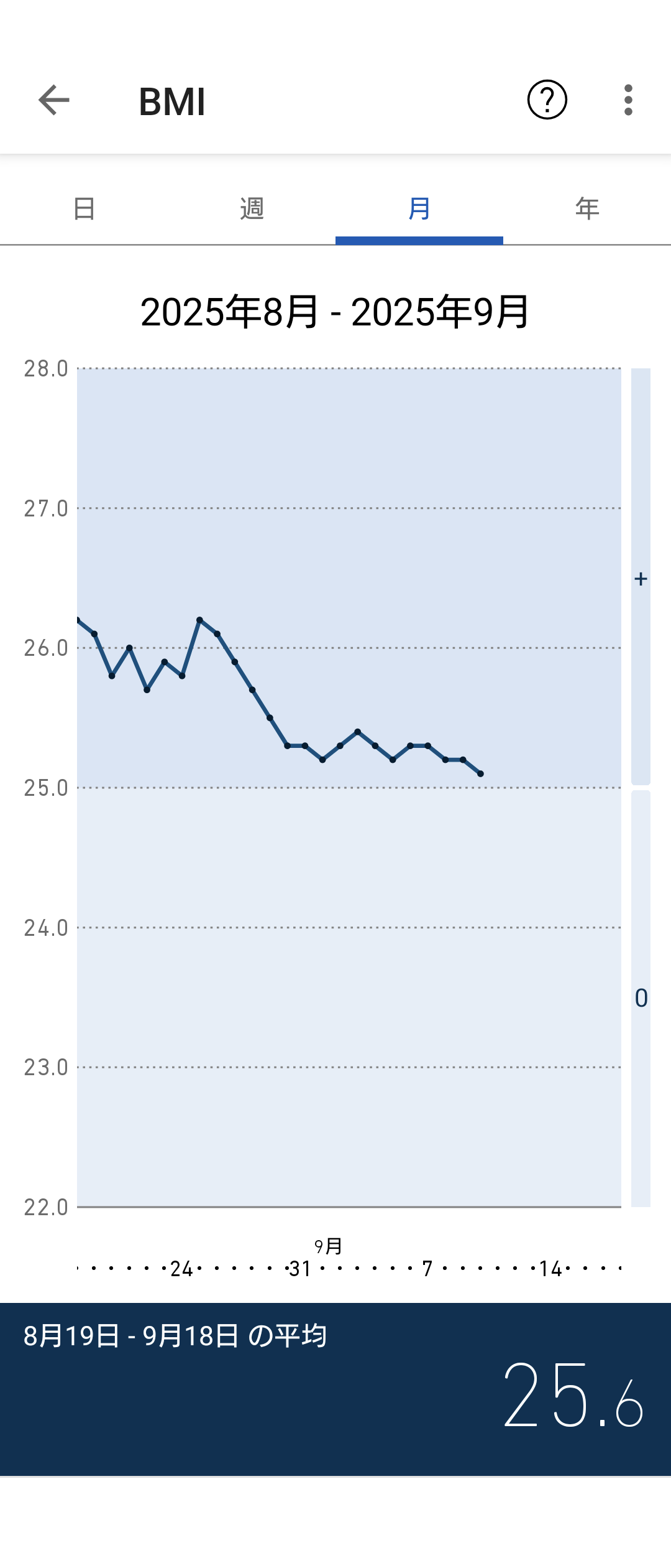 添付はMy BMI(肥満度)です。風邪で落ちましたが、「どうか上がりませんように」。![]()