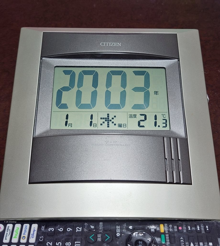 電池入れたら2003年の表示。2004年に購入したのでことし20歳、長持ちです。