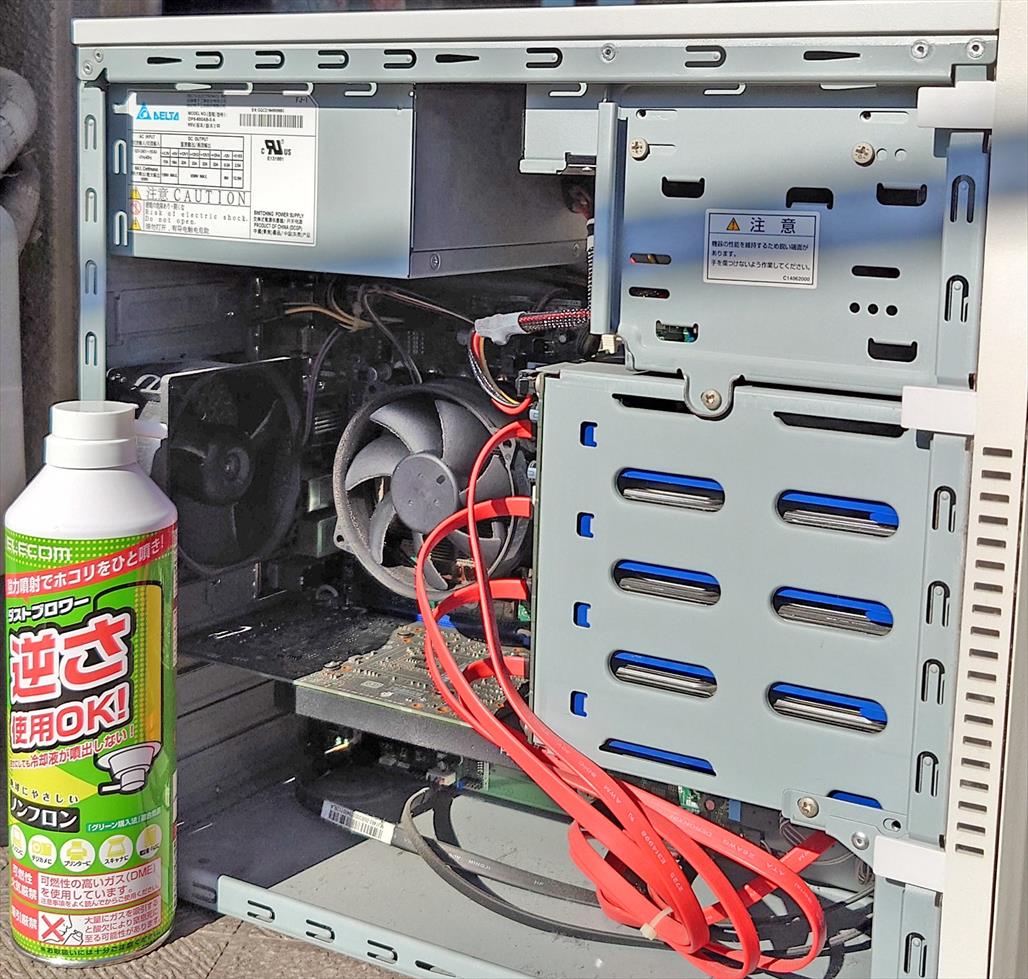 PCのフタ開けたら意外とホコリ少なめで、{半年前にブローやってたかな〜}ブツブツ独り言、いいながら。