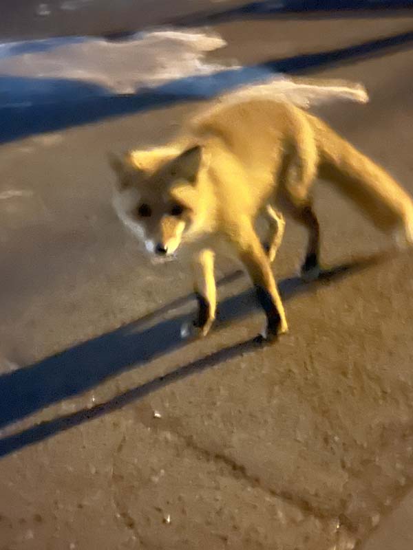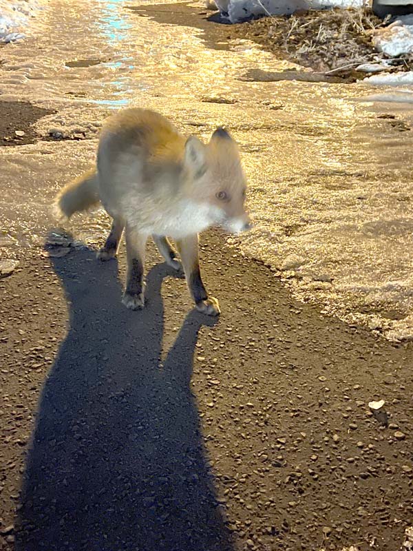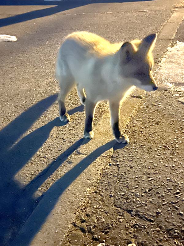 先日夜買い物に出て、キタキツネに会いました。コンちゃんコンちゃんと呼ぶと、こちらを向いて足を止めました。住宅街に出入りするようなキタキツネは、エゾ鹿同様、ずいぶん人馴れしていますね。