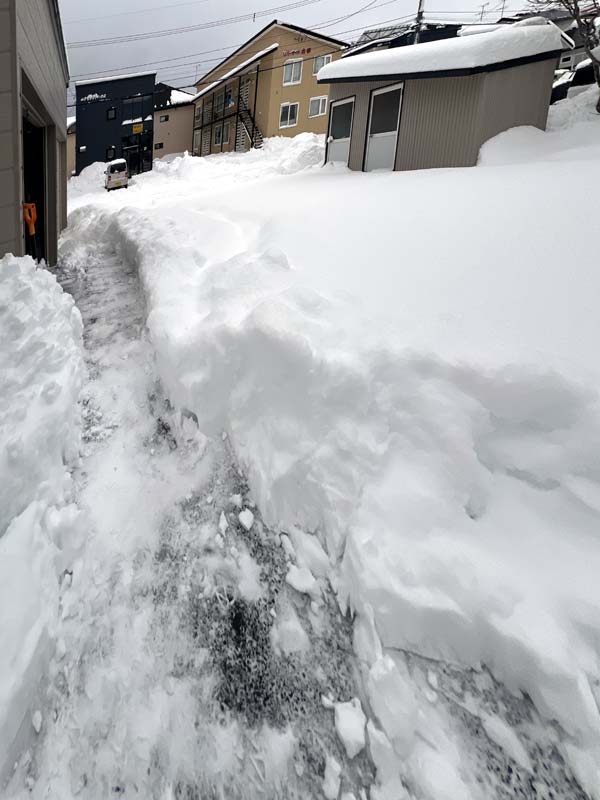 この辺だと常に雪は積もってるんで、買い物と犬の散歩以外であまり歩いてる感じの人は見かけないです。